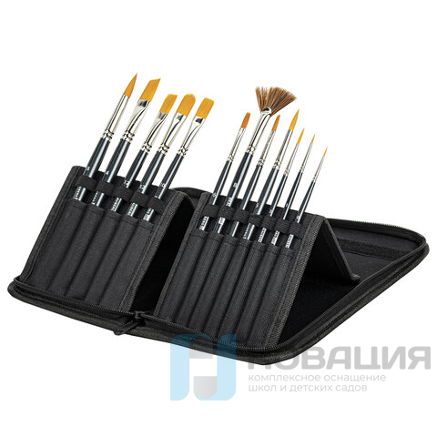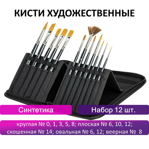 Кисти художественные набор 12 шт. в черном пенале, синтетика, BRAUBERG ART CLASSIC, № 0-14 + веерная, 200966