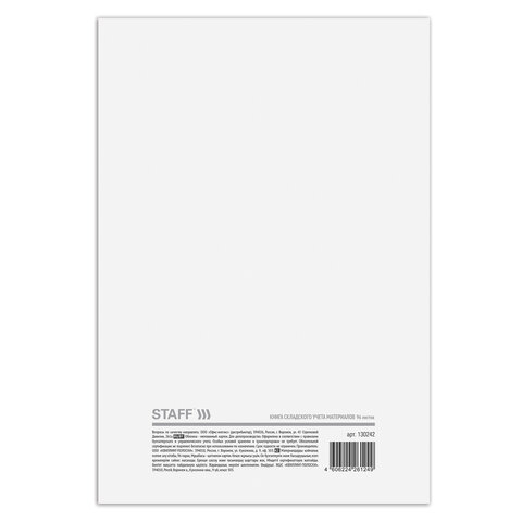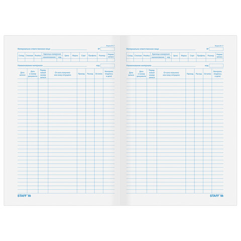 Книга складского учета материалов форма М-17, 96 л., картон, типографский блок, А4 (200х290 мм), STAFF, 130242