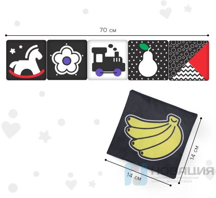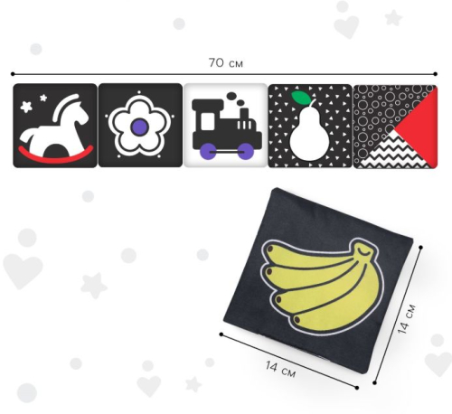 Шуршащая книжка-гармошка закрепляется на бортиках детской кроватки. На мягких страницах картинки. Изделие закрепляется при помощи ленточек. Развивающая книжка стимулирует цветовосприятие, развитие слуха и фантазии.