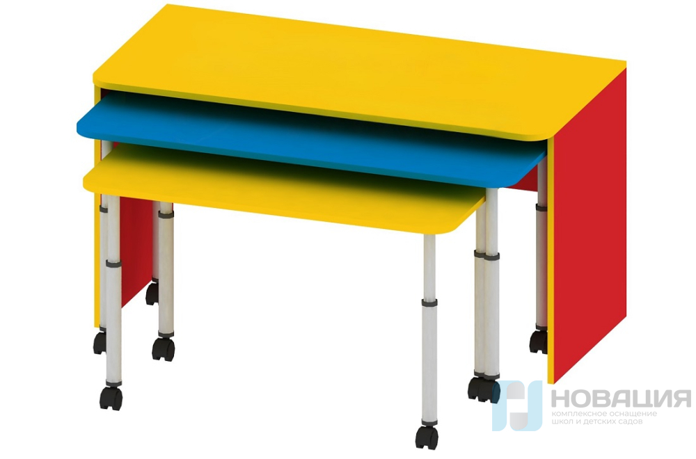 Компактный многофункциональный модуль для детей, с выкатными столами
