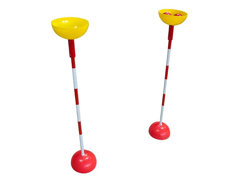 Стойки устанавливаются на расстоянии 3000 мм. В основания с отверстиями предварительно насыпается песок. Шар помещается в чашу. Стойки служат препятствиями, которые нужно объехать, чтобы переложить шарик из одной чаши в другую.