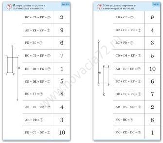 М2.5.I, М2.5.II. Измерение длины отрезка в сантиметрах линейкой. Закрепляется навык сложения и вычитания в пределах 10.