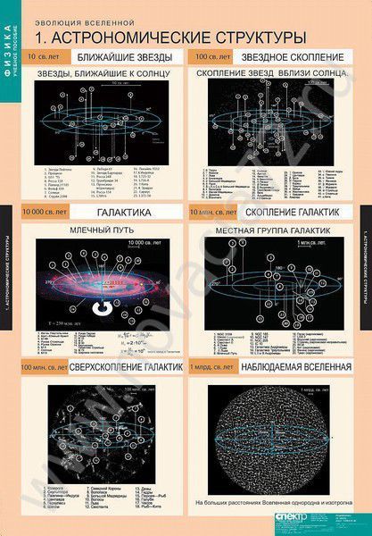 Альбом для кабинетов физики и астрономии представлен цветными плакатами. На каждом листе рассматривается отдельная тема, приведены формулы, схемы и рисунки.