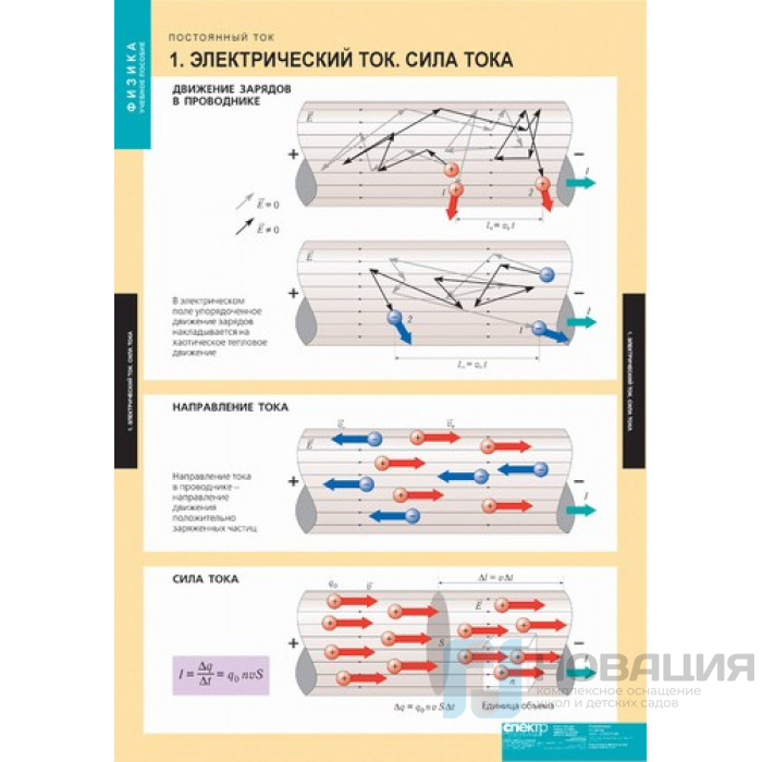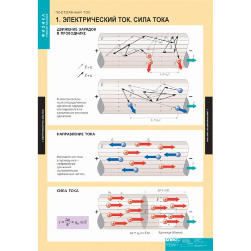 Рисунки и схемы на листах цветного альбома раскрывают тему постоянного тока. Каждый раздел сопровождается заголовком.