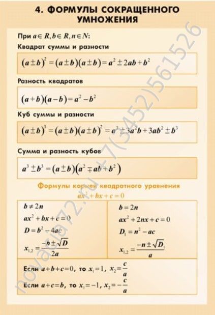 - Формулы сокращенного умножения;