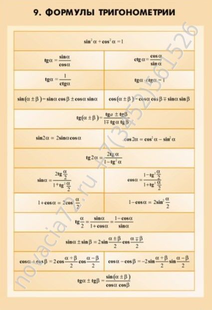 - Формулы тригонометрии.