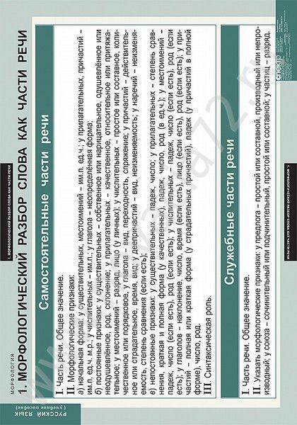 Комплект плакатов Русский язык. Морфология 5-11 кл.