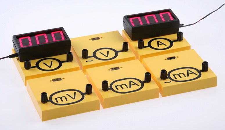 Комплект цифровых измерителей тока и напряжения используется для измерение силы постоянного и переменного тока и напряжения при проведении демонстрационных экспериментов по всем темам раздела «Электродинамика».