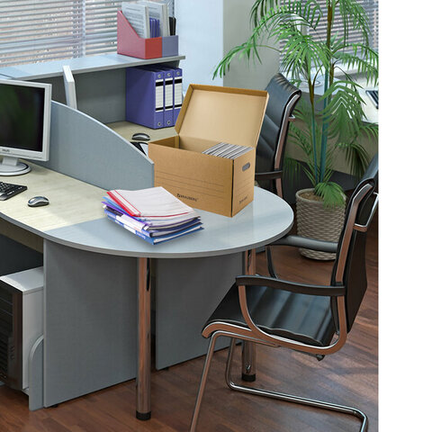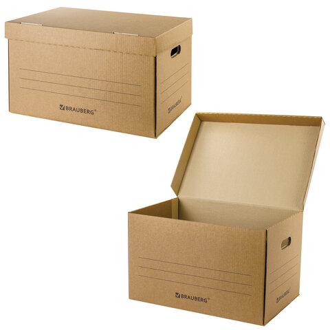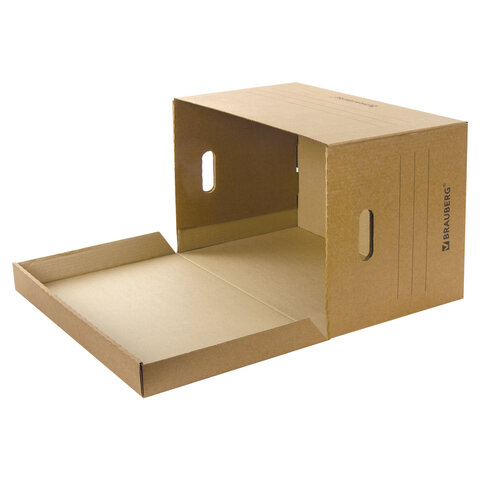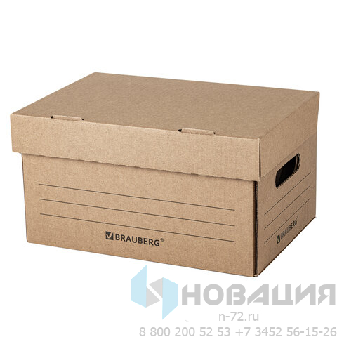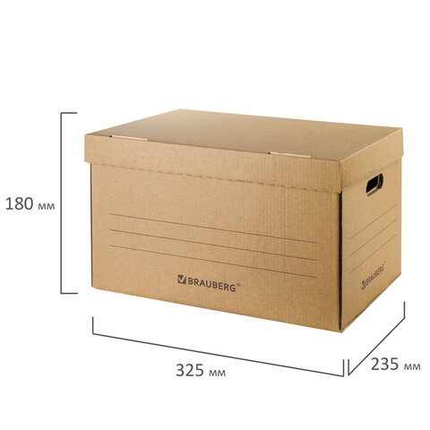 Короб архивный "Делопроизводство" (235х325х180 мм), с крышкой, гофрокартон, BRAUBERG, 129589