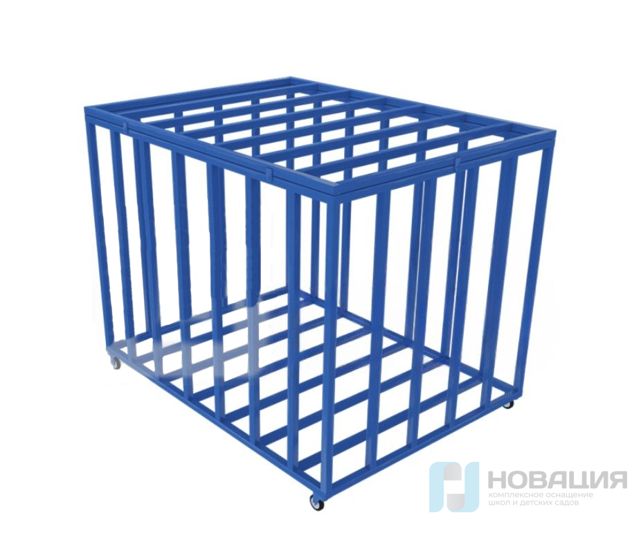 Корзина предназначена для хранения различных видов мячей. Изделие разборное с крышкой, что значительно экономит затраты при транспортировке. В базовой комплектации корзина установлена на роликовые опоры.