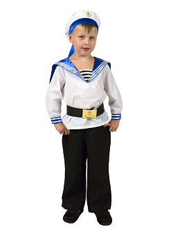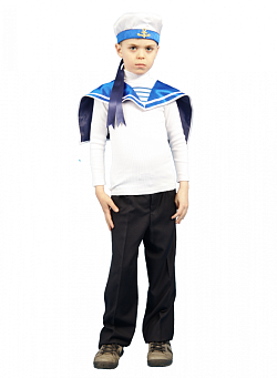 Костюм состоит из бескозырки с резинкой, юбки с поясом и воротника, стилизованного под гюйс. Может использоваться на праздничных выступлениях по случаю Дня победы и Дня защитника Отечества.