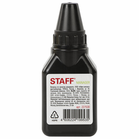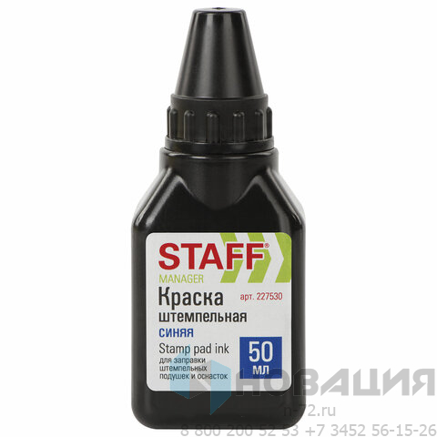 Краска штемпельная STAFF "Manager", синяя, 50 мл, на водно-спиртовой основе, 227530