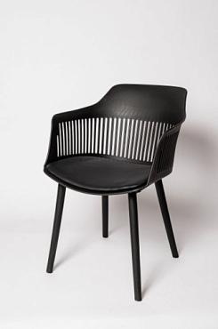 Барный стул выдерживает нагрузку до 100 кг. Высота опоры на круглом основании регулируется. Изделие с округлой спинкой оснащается 2-мя подлокотниками. Обивка из кожзаменителя выгодно подчеркивает современный дизайн. Мягкое кресло для общественной зоны практично: легко очищается, поверхности устойчивы к истиранию.