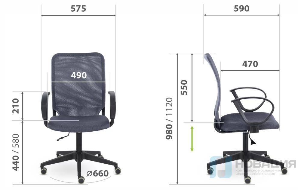 Размеры (ШхГхВ): 575х590х980-1120 мм.