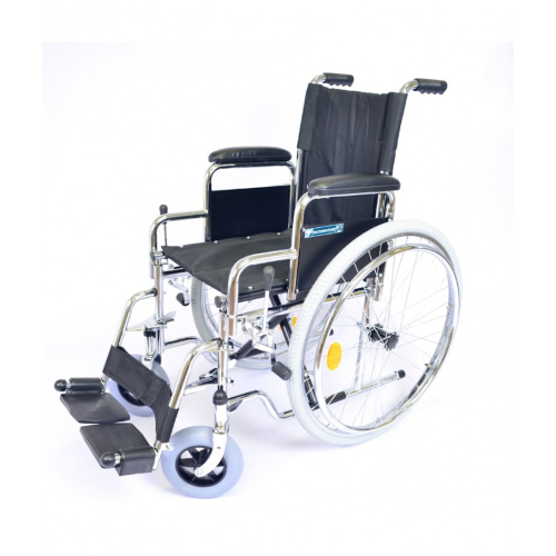 Оборудована удобной системой для облегчения посадки: ступенчатые подлокотники с мягким покрытием и поворотные съемные подножки с возможностью изменения длины. Особенностью подлокотников является возможность приближения кресла непосредственно к поверхности стола или препятствий.