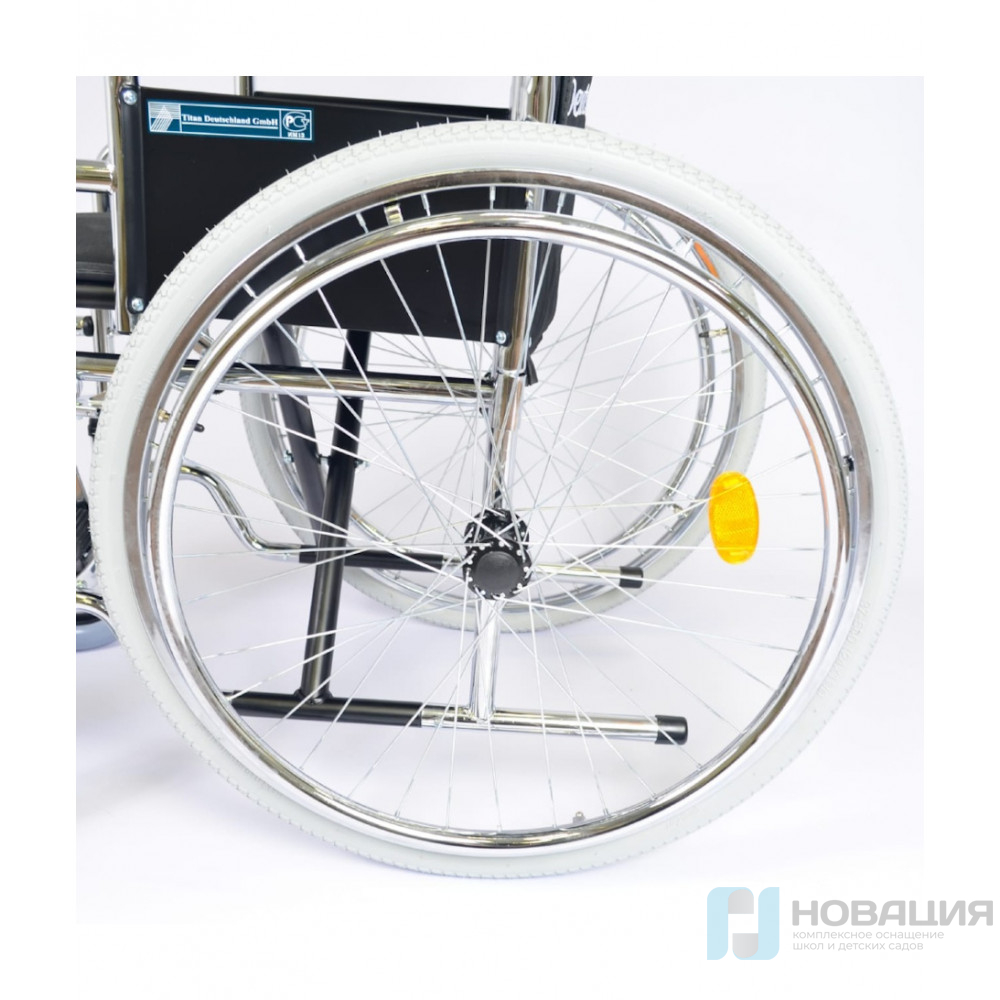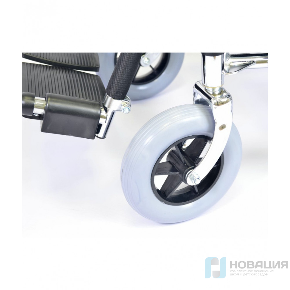 Особенностью конструкции являются съёмные подножки, раскладывающиеся подлокотники и наличие надежных тормозов на колесах.