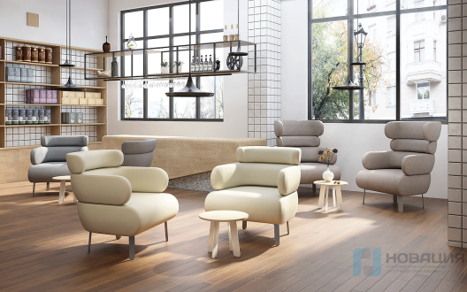 - низкая спинка, металлические опоры, размеры (ШхГхВ) - 850х900х890 мм;