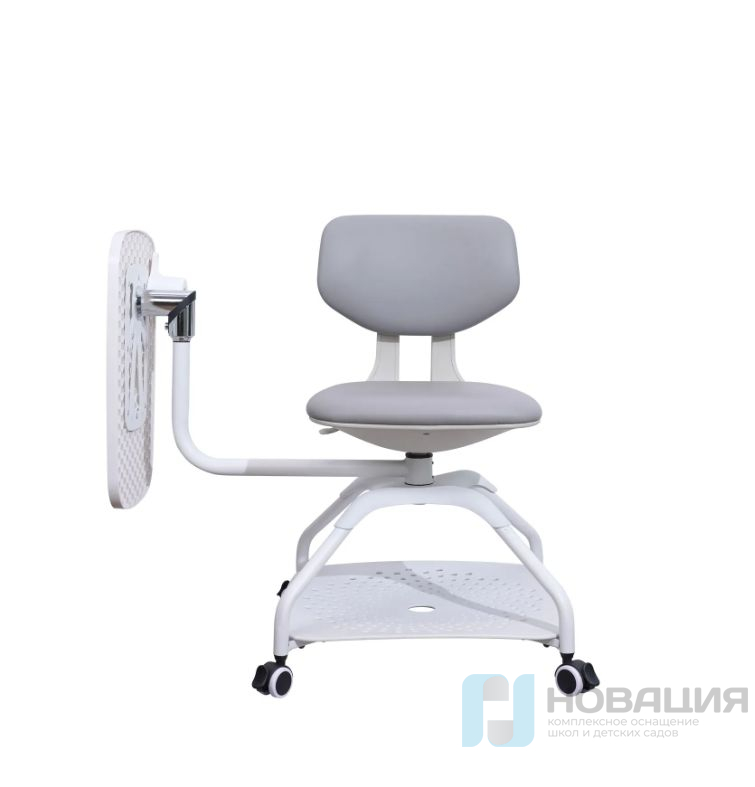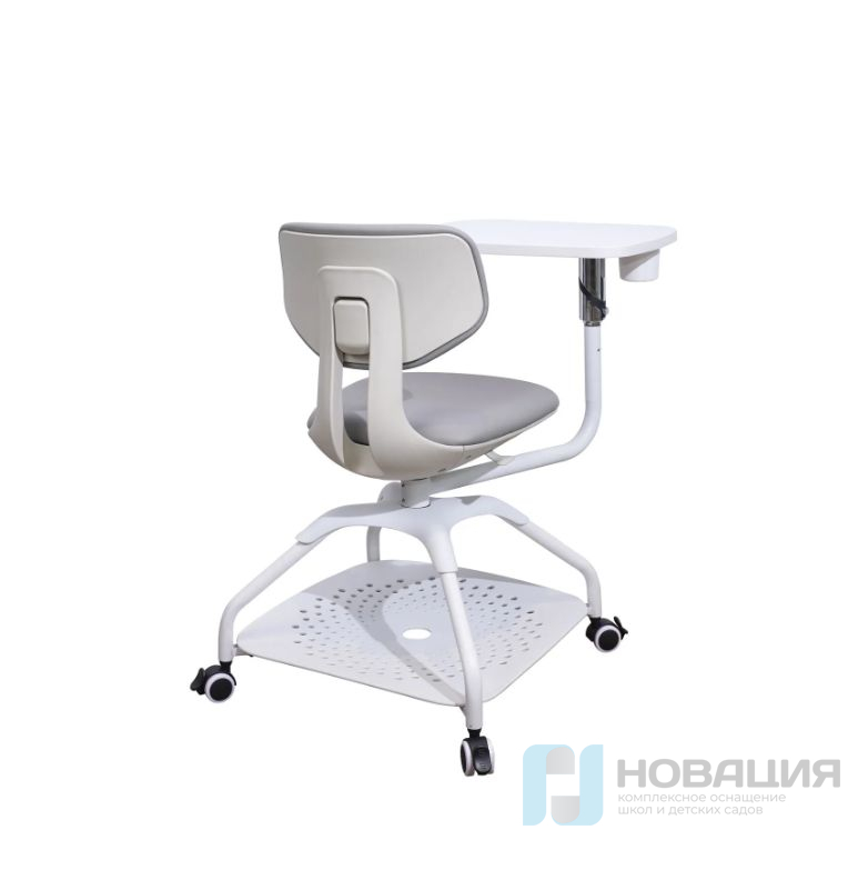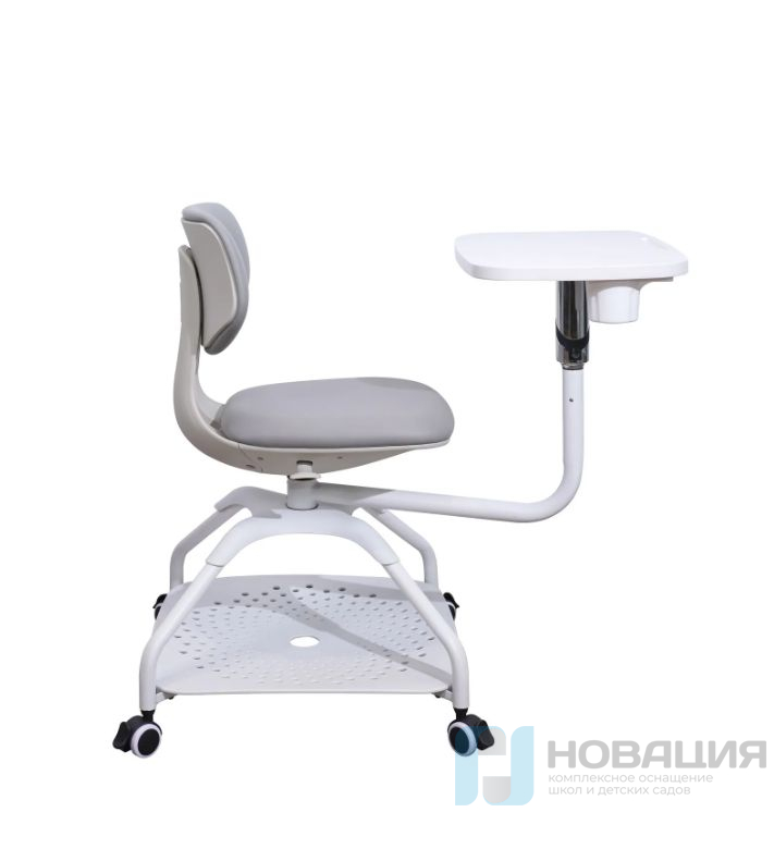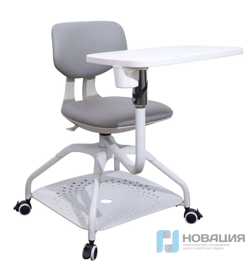 Полочка под сиденьем служит местом для хранения учебников и письменных принадлежностей. Столик поворачивается на 360 градусов, предназначен для комфортной работы как для правшей, так и для левшей. Дополнительно предусмотрен удобный держатель для стакана или бутылок.