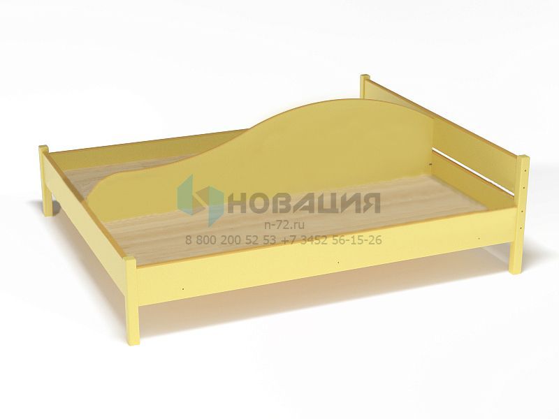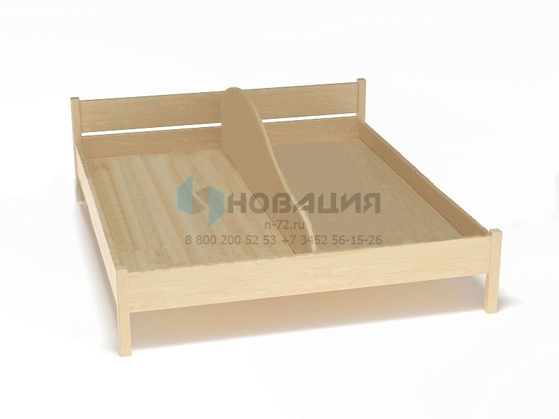 2-хместная кровать с прямоугольным изголовьем стоит на 4-х ножках. Спальные места расположены на одном уровне, отделены фигурной перегородкой. Каждое ложе с 4-х сторон окружают бортики.