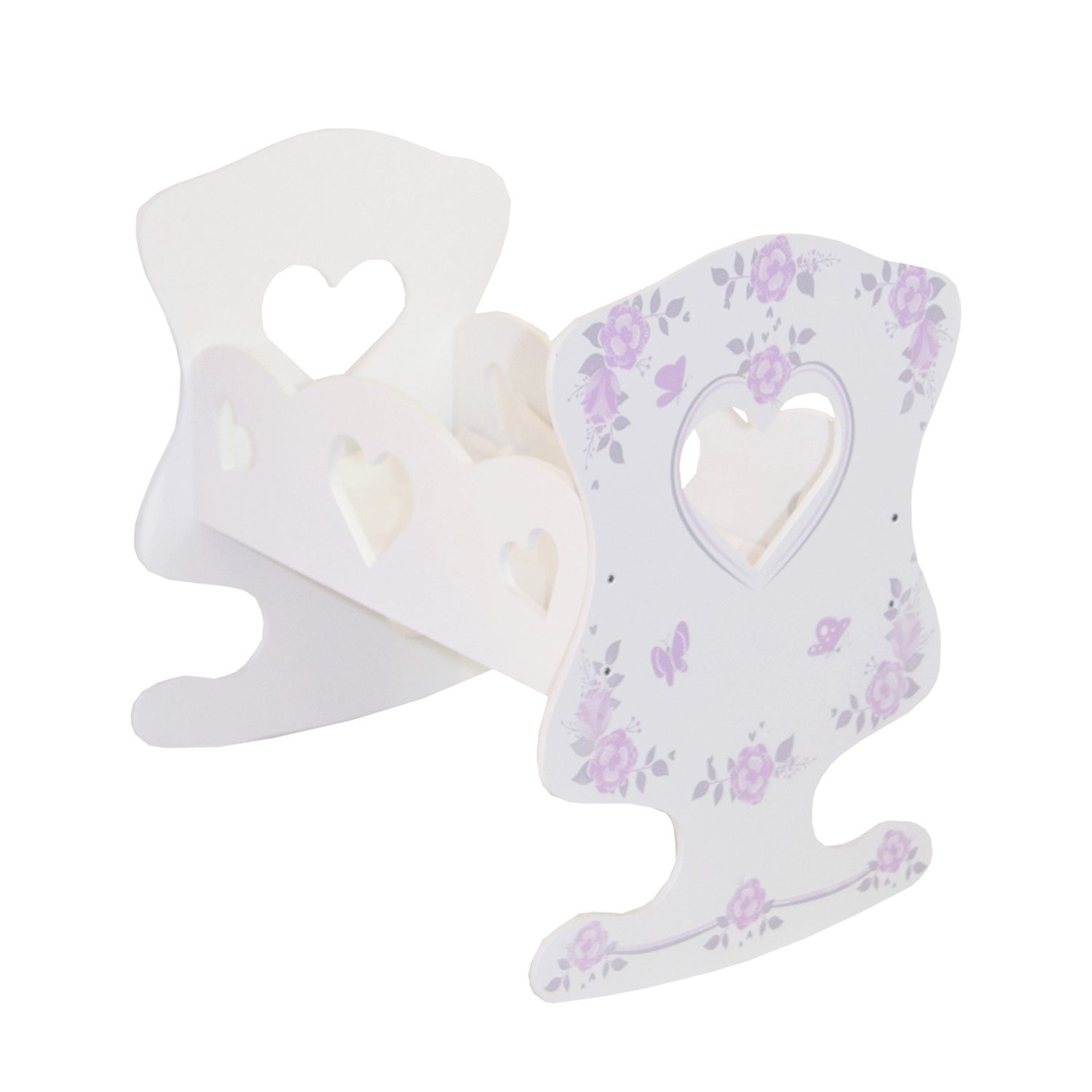 Люлька предназначена для кукол высотой не более 45 сантиметров. Поставляется в разобранном виде с инструкцией по сборке. В комплект входят балдахин и постельное бельё: матрас, подушка и одеяло. Корпус люльки украшен фигурными вырубками в форме сердец и полноцветным рисунком.