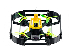 Полет устройства с видеопередатчиком длится 5 минут. Для тренировки подойдет просторный кабинет. Запуск вне помещений должен проходить в сухую безветренную погоду. Камера транслирует кадры в формате 1080P/601ps, 1080P/30ps, 720P/601ps. Дополнительные устройства для приема картинки (мониторы, очки, шлемы) приобретаются отдельно.