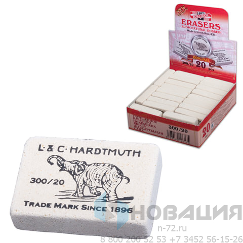 Ластик KOH-I-NOOR "Слон" 300/20, 45х32х12 мм, белый, прямоугольный, натуральный каучук, 0300020024KDRU