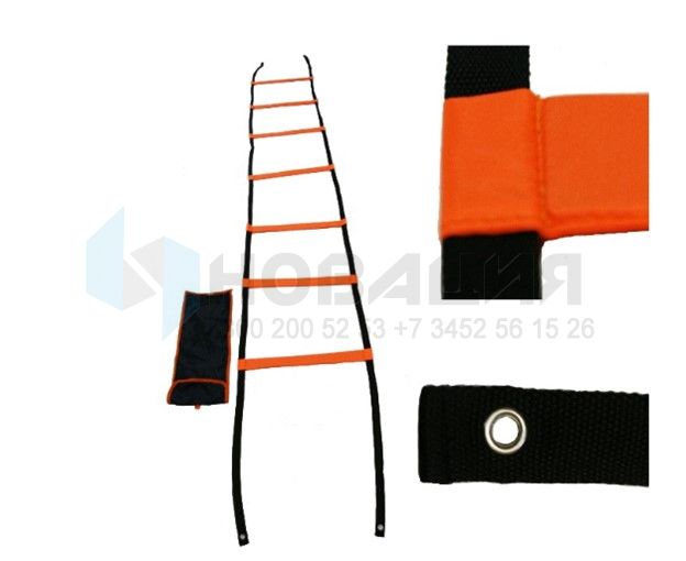 Лестница используется во время спортивных занятий в ДОУ и школе. Подходит для тренировки координации, чувства ритма и баланса. Оснащена прочными пластиковыми перекладинами; для лучшей видимости окрашена в яркий цвет. Ленты из полиэстера дополнены пластиковыми карабинами, что позволяет присоединять другие лестницы. Поставляется в сумке.