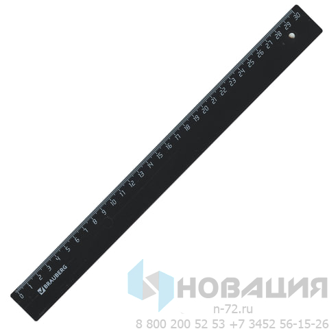 Линейка пластик 30 см, BRAUBERG, непрозрачная, черная, 210612