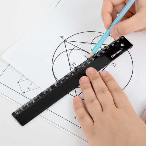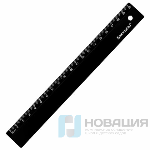 Линейка пластиковая 20 см, BRAUBERG, черная, 210829