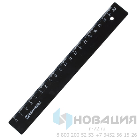Линейка пластиковая 20 см, BRAUBERG, непрозрачная, черная, 210607
