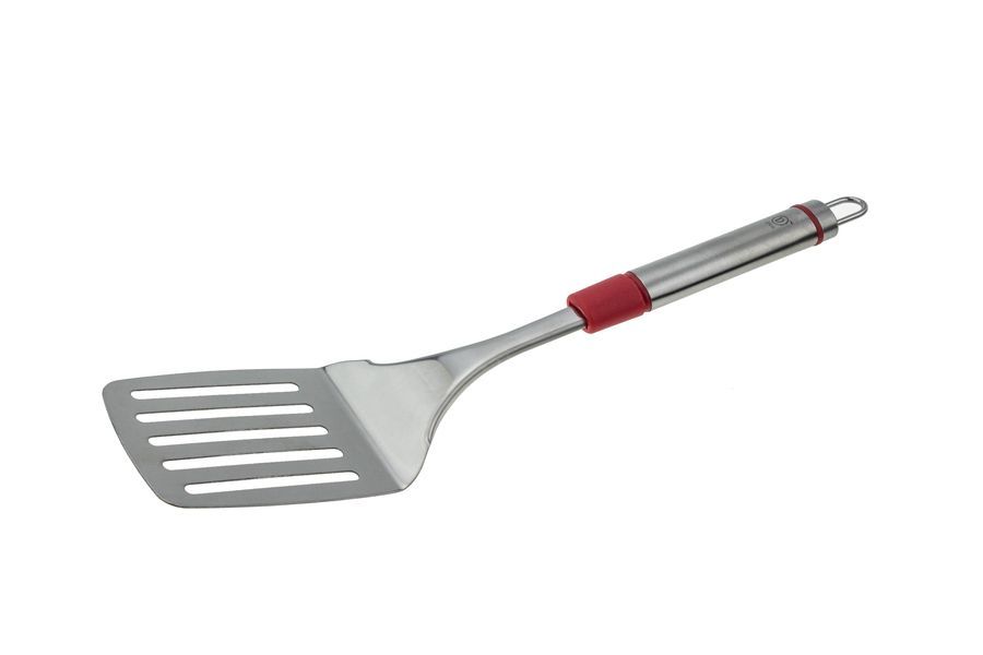 Лопатка с прорезями из нержавеющей стали применяется на кухне, для раздачи готовой продукции. Может использоваться с любым покрытием сковороды. Рекомендуется для кухонь школ и детских садов.