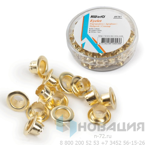 Люверсы омедненные KW-trio, комплект 250 шт., внутренний диаметр 4,8 мм, длина 4,6 мм, цвет золото, 9707, -9707