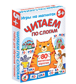 Цветные карточки с иллюстрациями и слогами крепятся к магнитным поверхностям. Расположив элементы набора на доске или мольберте, педагог поможет ребенку запомнить буквосочетания, определить для них логичную последовательность.