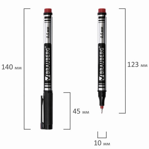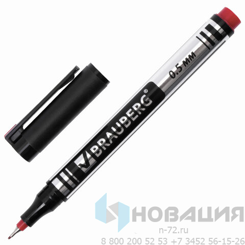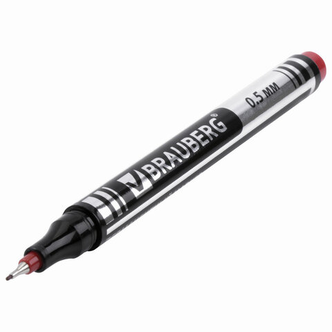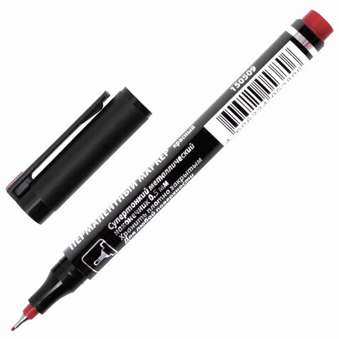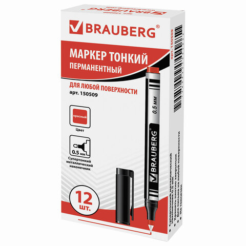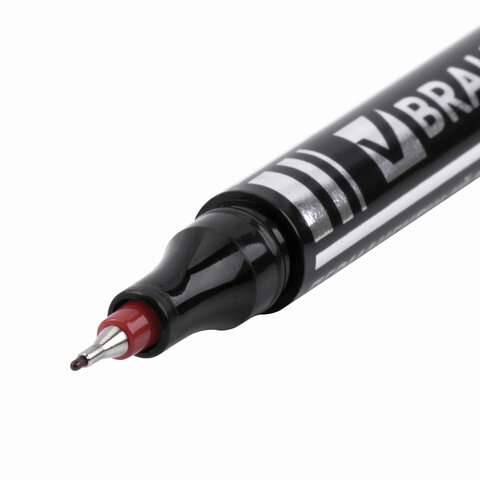 Маркер перманентный (нестираемый) BRAUBERG "Jet", КРАСНЫЙ, супертонкий металлический наконечник, 0,5 мм, 150509