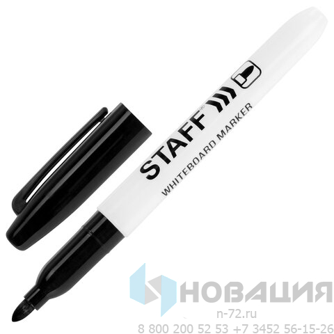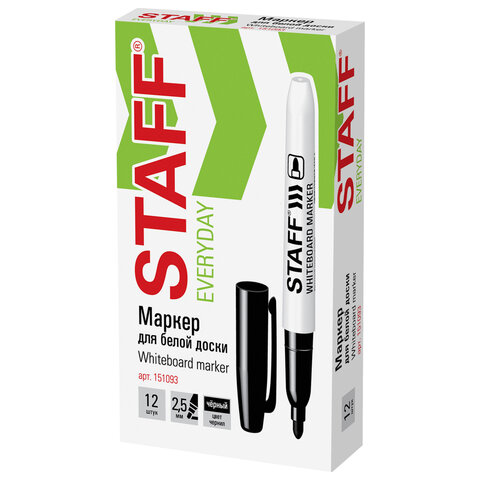 Маркер стираемый для белой доски ЧЕРНЫЙ, STAFF EVERYDAY, 2,5 мм, тонкий корпус, 151093