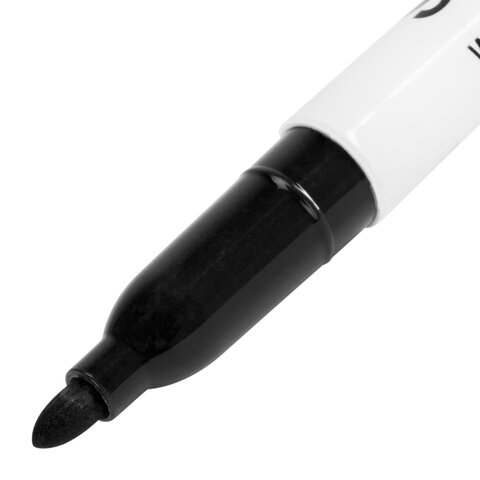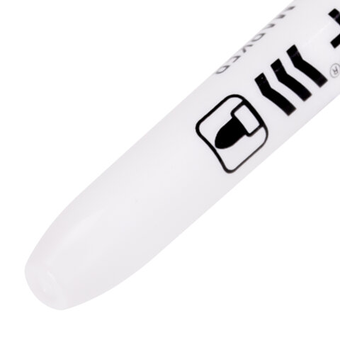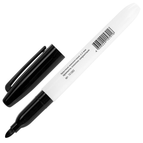 Маркер для доски черного цвета обладает круглым пластиковым корпусом диаметром 17 мм. Наконечник круглой формы обеспечивает толщину линии письма 2-5 мм в зависимотси от угла наклона, что позволяет писать как мелким, так и крупным шрифтом. Благодаря спиртовой основе чернила быстро высыхают и не оставляют разводов, легко стираются сухой губкой. Изделие не перезаправляется. Цвет колпачка соответствует цвету чернил.