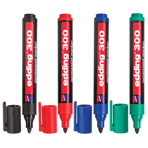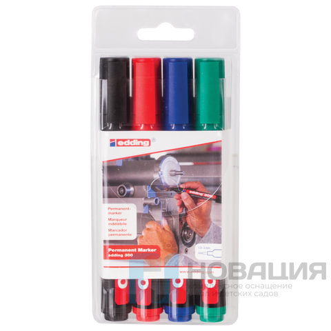 Маркеры перманентные EDDING 300 НАБОР 4 шт., АССОРТИ, круглый наконечник, 1,5-3 мм, E-300/4S