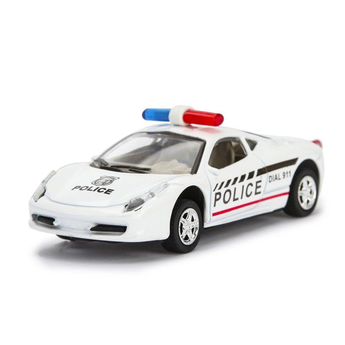 Инерционная модель полицейского автомобиля выглядит реалистично (масштаб 1:43). Механизм приводится в движение рукой. Машинка быстро развивает скорость. Во время игры воспроизводится звук двигателя. Корпус подсвечивается, двери не открываются.
