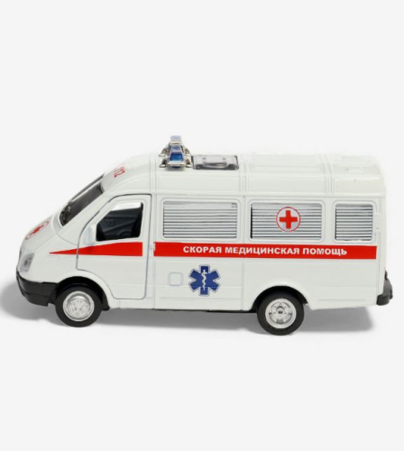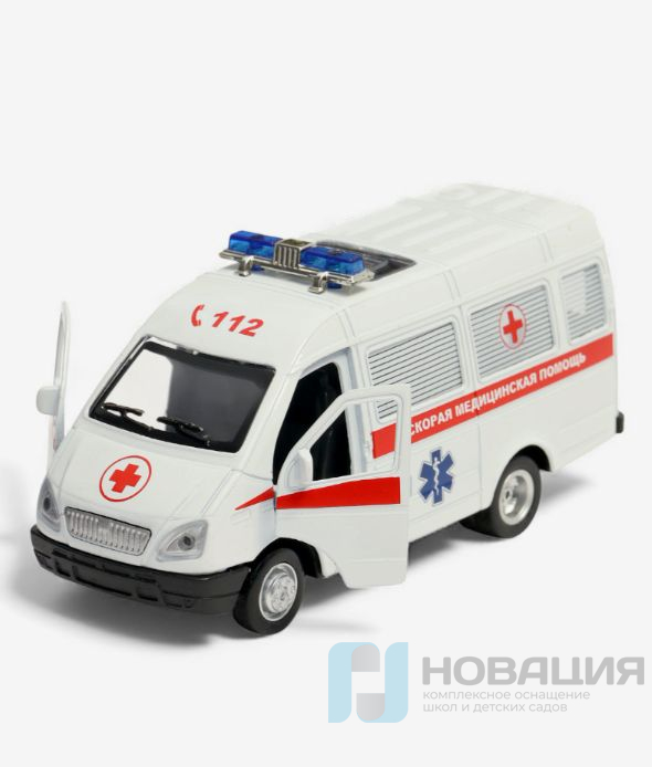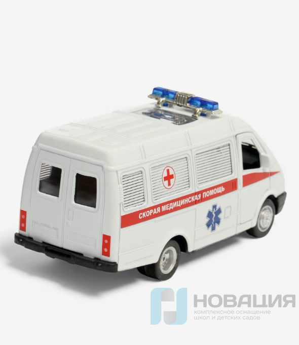 Подвижная модель оформлена как транспорт службы скорой помощи. Машинка задействуется в сюжетах игр.