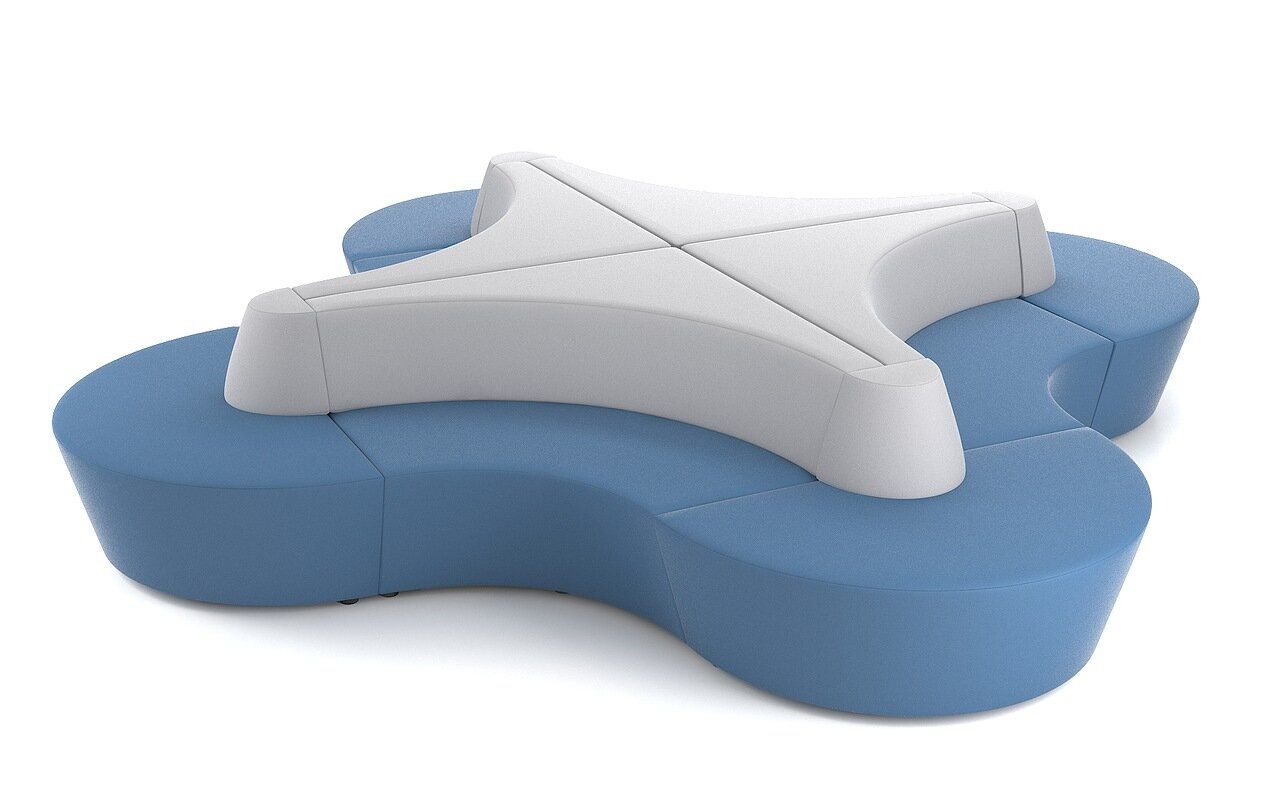 8 элементов со спинками и сиденьями соединяются в композицию без острых углов. Обивка из экокожи выдерживает не менее 50000 циклов истирания.