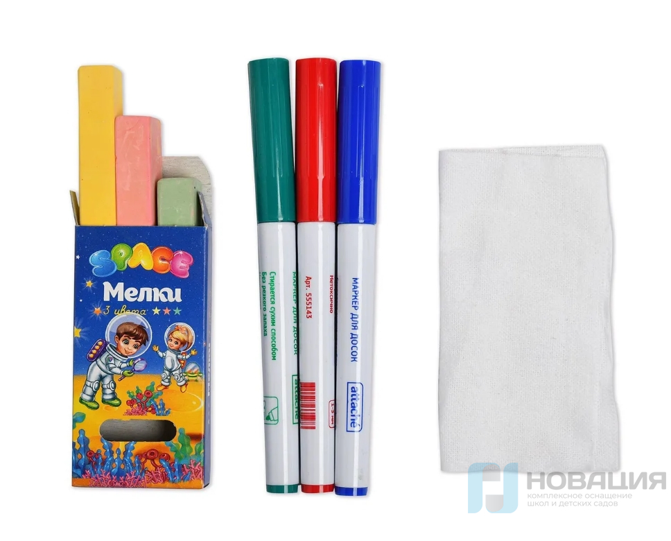 Двусторонняя доска, предназначенная для развивающих занятий, рисования и письма. С одной стороны, мольберт представляет собой обычную поверхность для рисования мелом, напоминающую школьную доску. Вторая сторона – магнитная, для крепления любых обучающих материалов на магнитной основе и рисования или письма специальным водным маркером. Оснащена поддоном для хранения пишущих принадлежностей и аксессуаров.