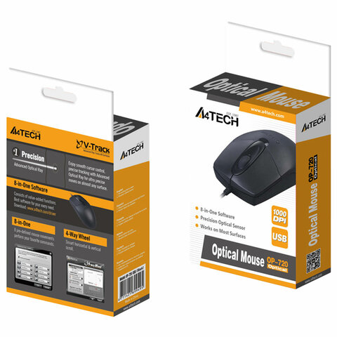 Конструкцией мыши проводной A4TECH OP-720S предусмотрено 3 кнопки, не издающие характерного щелчка в процессе нажатия. Колесико прокрутки служит для удобного просмотра файлов и страниц в интернете. Матовое покрытие пластикового корпуса предотвращает загрязнения. Тщательно продуманная форма способствует комфортному захвату как правой, так и левой рукой.