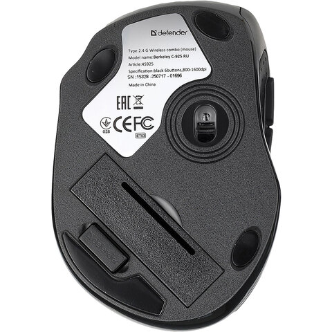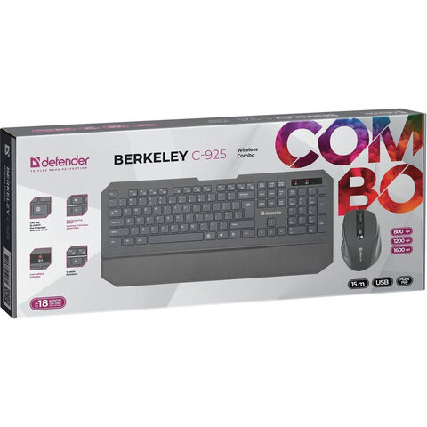 Набор беспроводной DEFENDER Berkeley C-925, клавиатура, мышь 5 кнопок + 1 колесо-кнопка, черный, 45925