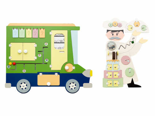 - кулинар (510х750 мм) с шестеренками, счетным материалом, тактильной дорожкой и бегунком, дверцами, круговыми элементами, карточками,
