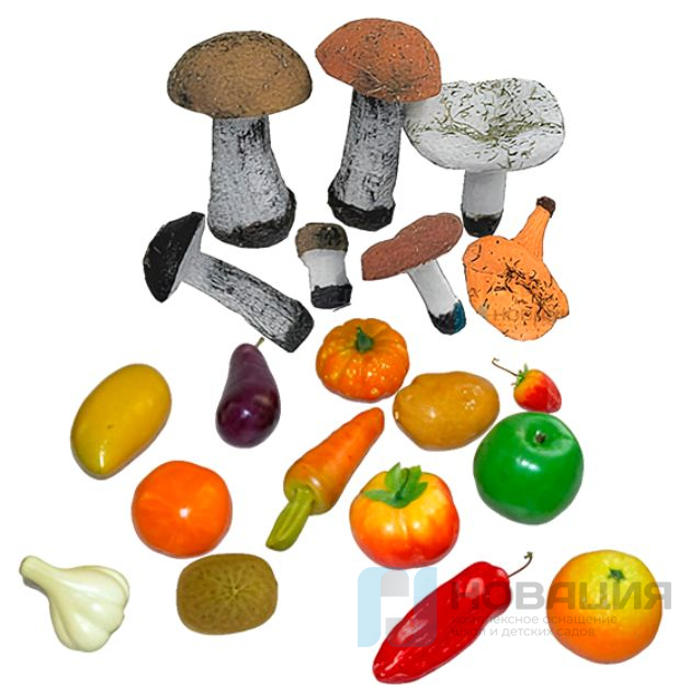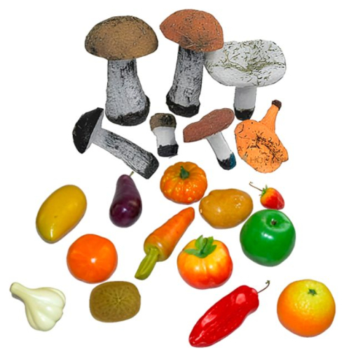 Набор гипсовых муляжей фрукты, овощи и грибы