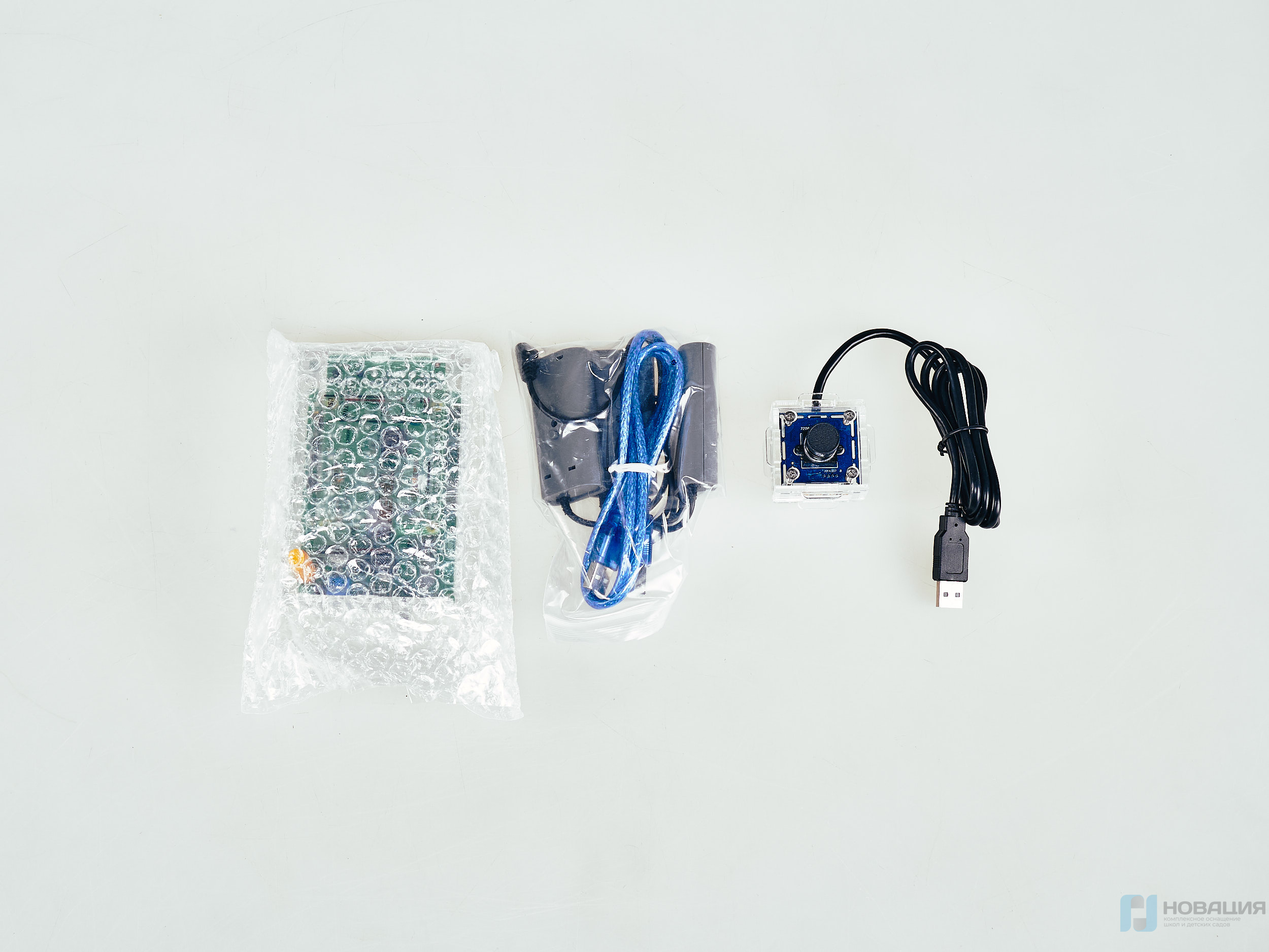 Микрокомпьютер с операционной системой позволяет решить следующие задачи - распознавать объект - ЛИЦО, отслеживать направляющие линии;, обнаруживать графические примитивы (окружностей), распознавать QR-коды, обнаруживать движения, анализировать цветовую гамму кадра. Микрокомпьютер состоит из двух частей - контроллера Трекдуино и микрокомпьютера Raspberry Pi 3.
