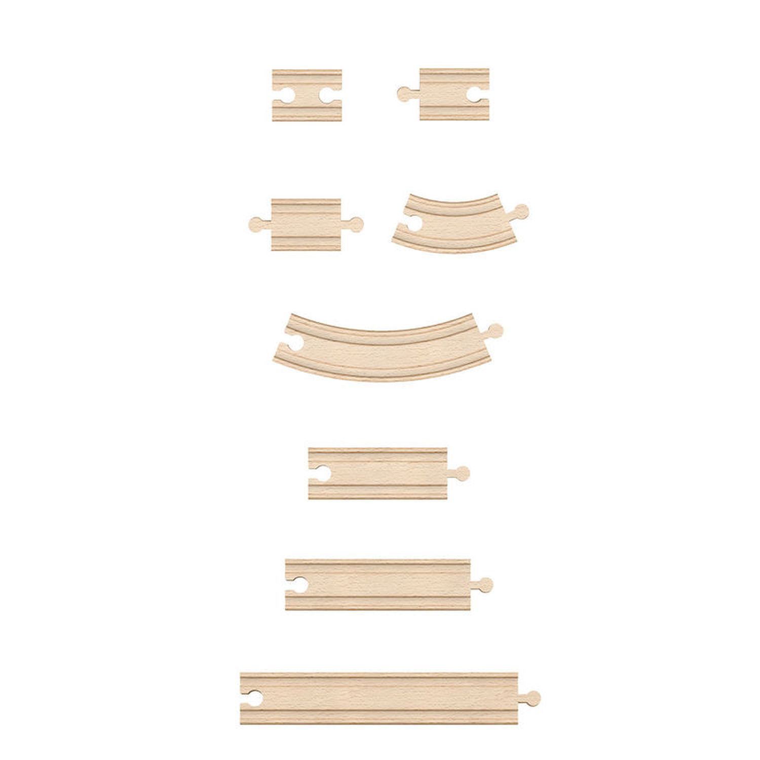 С помощью набора можно дополнить и расширить игрушечную железную дорогу. В комплект входят детали прямой и изогнутой формы. Игры с использованием набора помогут в развитии мелкой моторики.