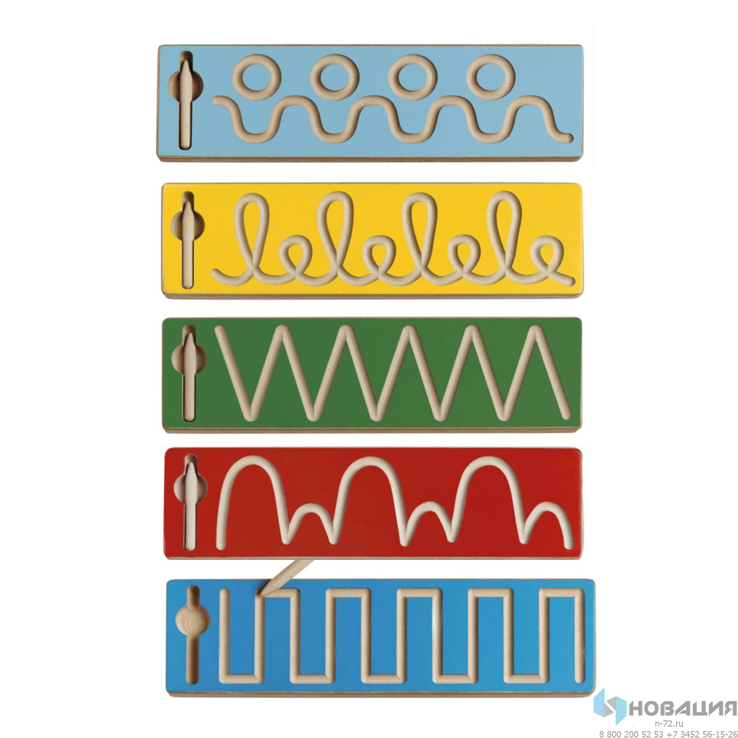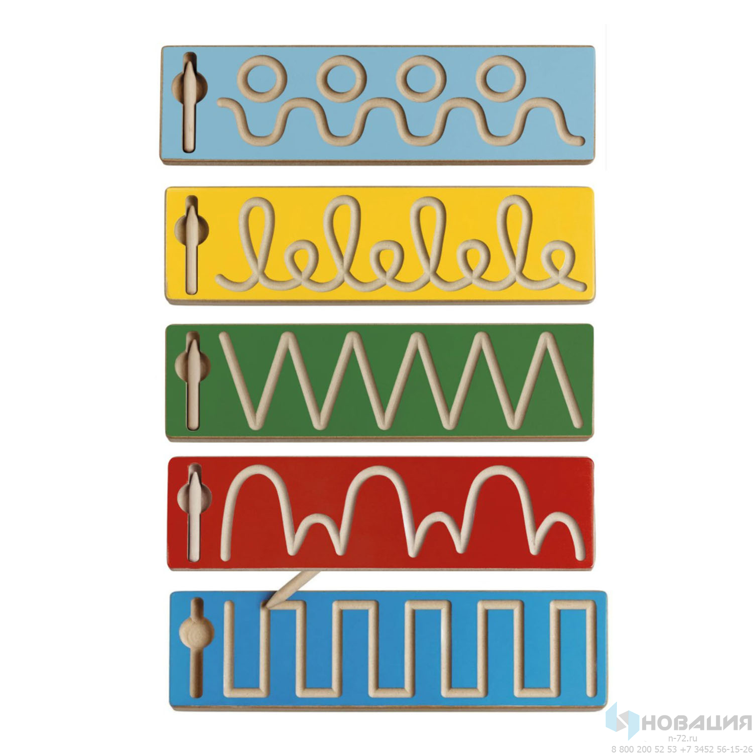 В комплекте 5 тренажеров (размер каждого 350х100х16 мм) с разными рисунками: