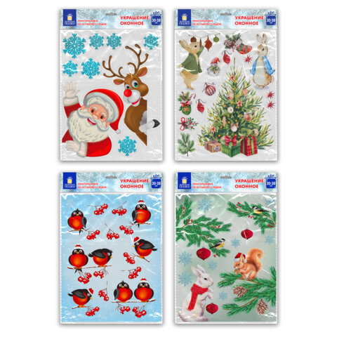 Наклейка для окон двусторонняя МНОГОРАЗОВАЯ 30*38см,"Ассорти №1", 4 дизайна, ЗОЛОТАЯ СКАЗКА, 591921