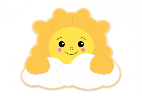 Декорация в виде солнца с лучами поможет создать гостеприимную обстановку в раздевалке, холле, коридоре детского сада. Отшлифованные элементы панели закрепляются при помощи фурнитуры, поставляемой в комплекте.